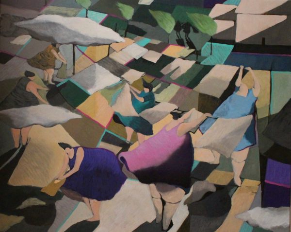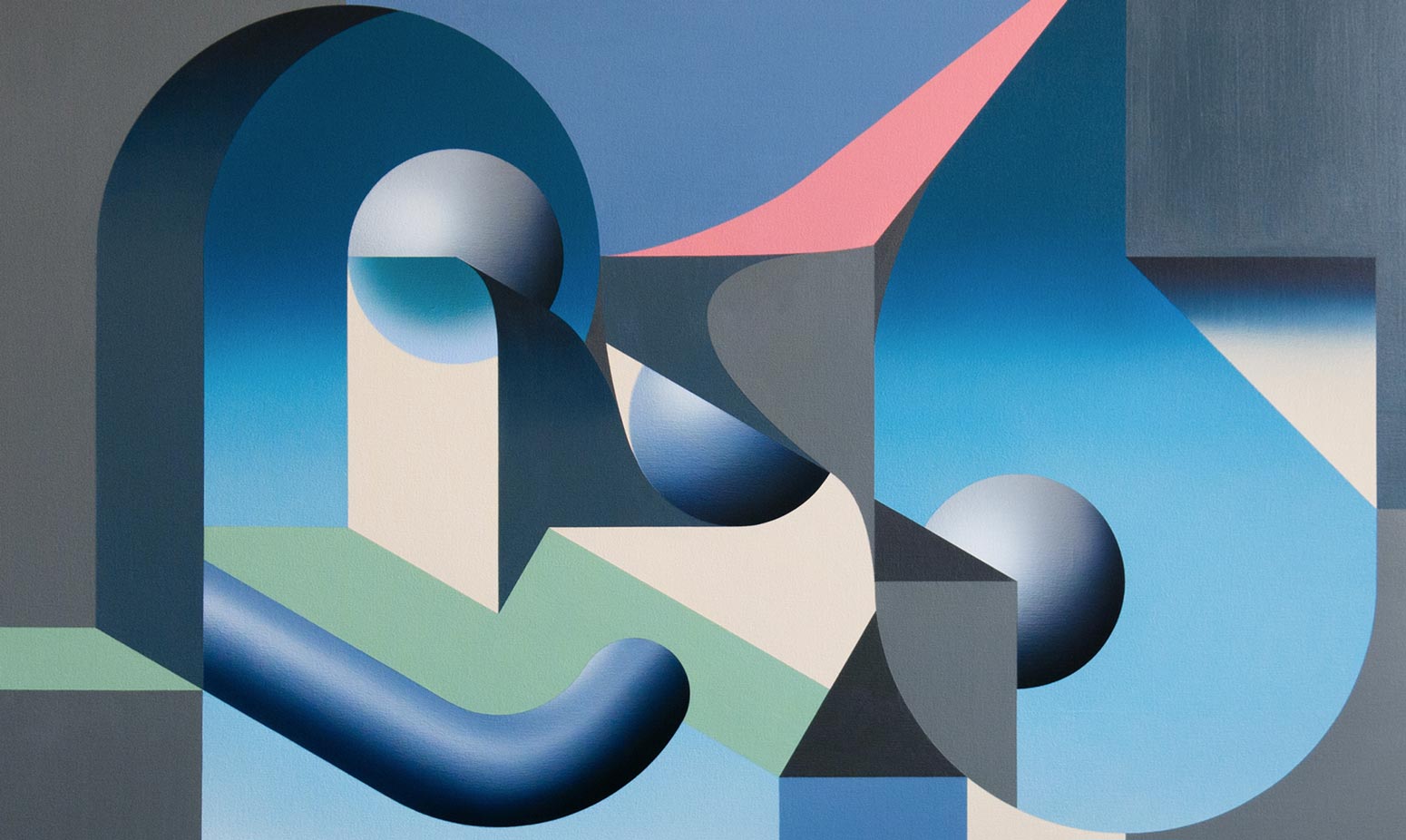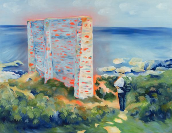 The two dimensional medium of painting depicting elements with volume and depth channels both the beautiful complexity and the false flatness of this separative ‘wall’.